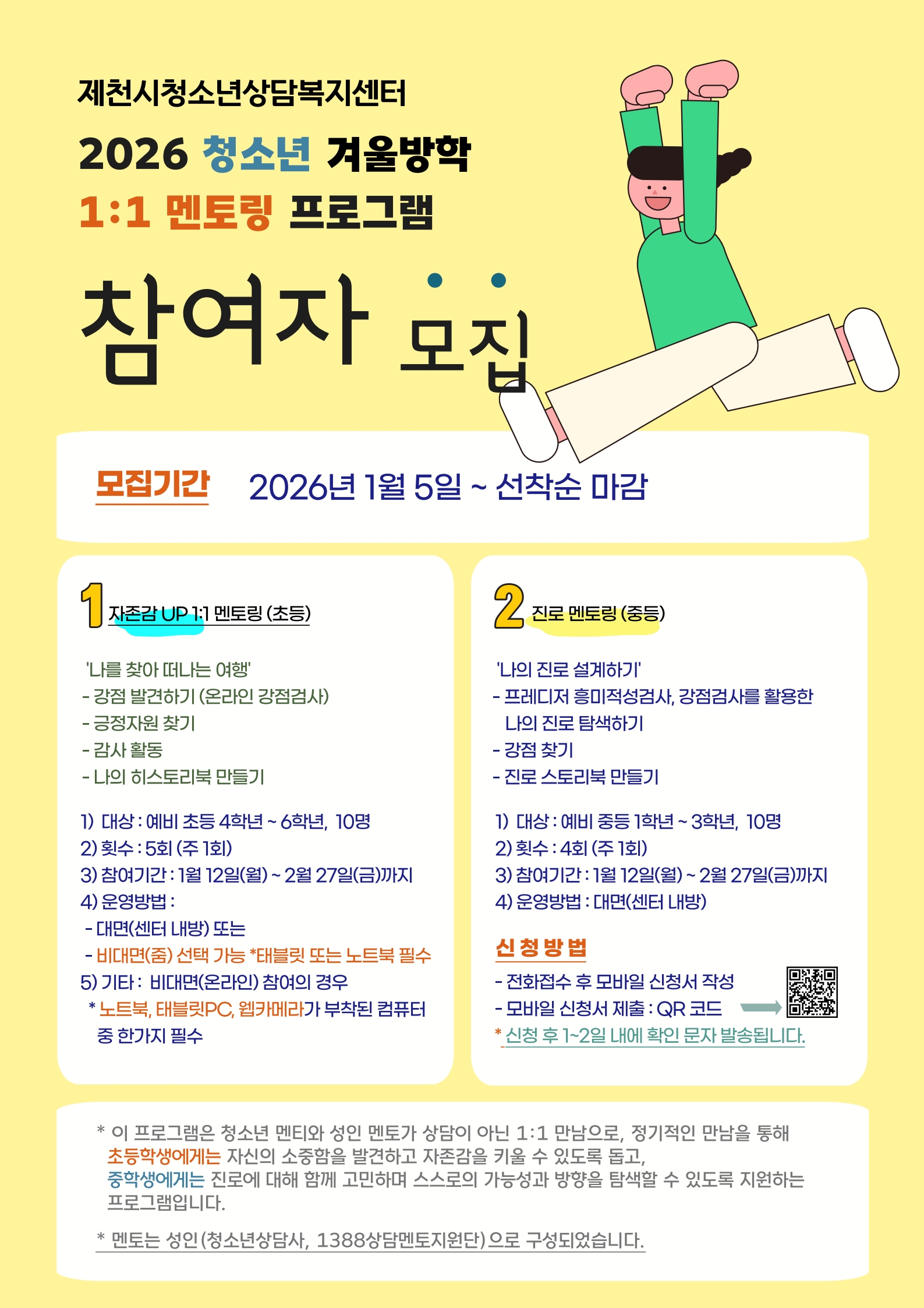 2026³â °Ü¿ï¹æÇÐÀ» ¸Â¾Æ û¼Ò³â ¸àÅ丵 ÇÁ·Î±×·¥ ÁøÇàÇÕ´Ï´Ù!