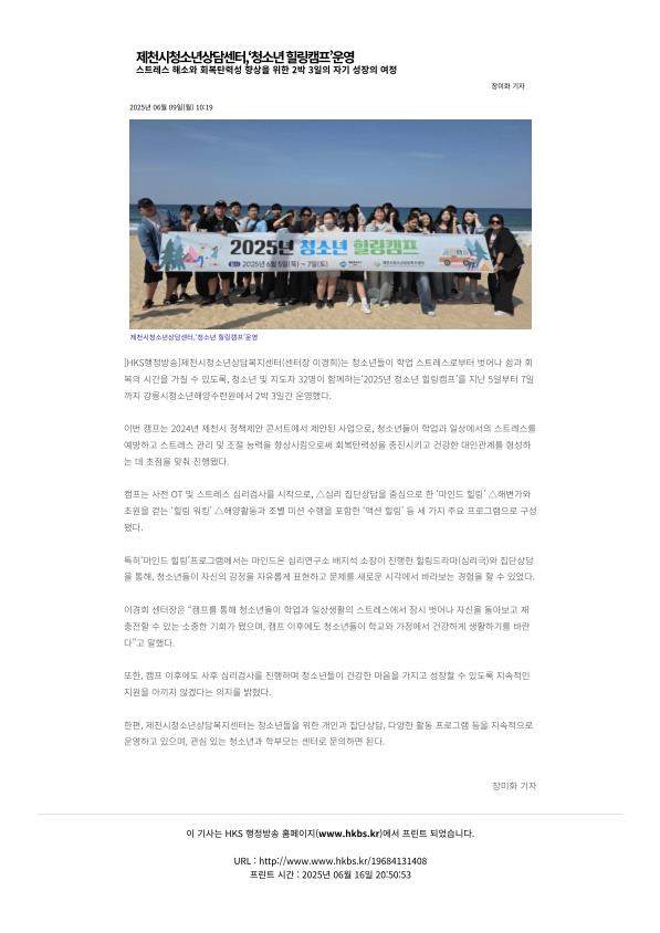 Á¦Ãµ½Ãû¼Ò³â»ó´ã¼¾ÅÍ, 'û¼Ò³â Èú¸µÄ·ÇÁ' ¿î¿µ