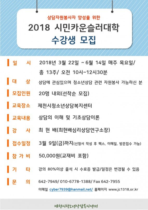 2018 시민카운슬러대학 수강생을 모집합니다^^