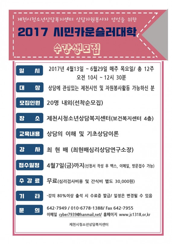 2017년 카운슬러대학 초급과정 수강생을 모집합니다!