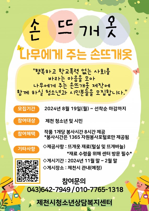 제천시청소년상담복지센터 '나무에게 주는 손뜨개옷' 참여자 모집