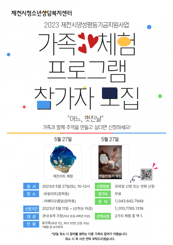 제천시청소년상담복지센터에서 가족체험 프로그램을 진행합니다!