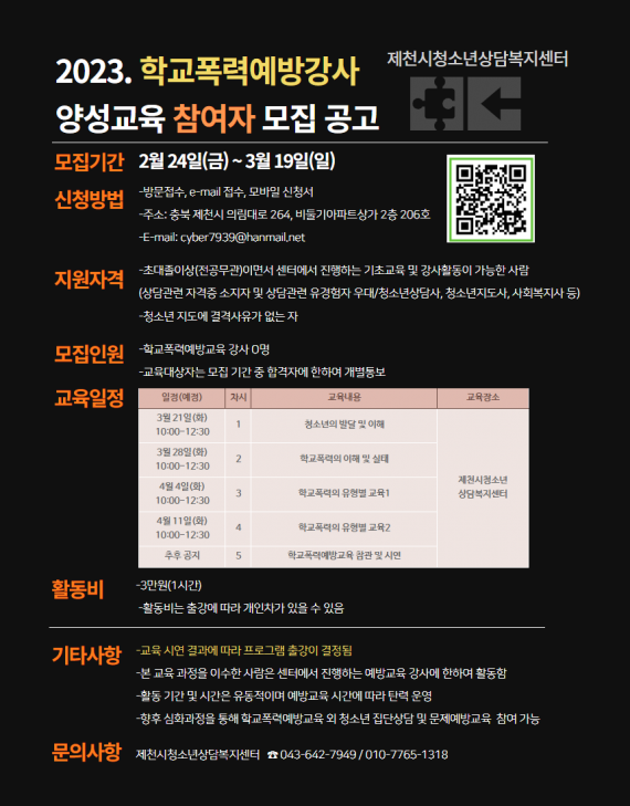 [마감]2023.학교폭력예방강사 양성교육 참여자 모집 공고