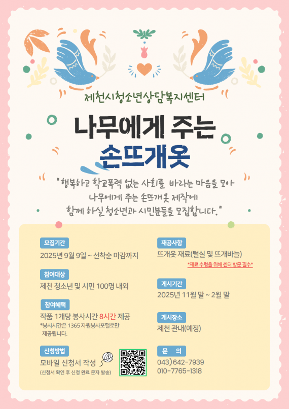 [마감]제천시청소년상담복지센터 2025년 '나무에게 주는 손뜨개옷' 참여자 모집