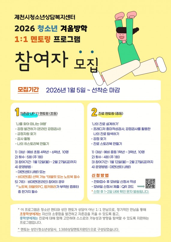 [마감]2026 청소년 겨울방학 1:1 멘토링 프로그램 참여자 모집