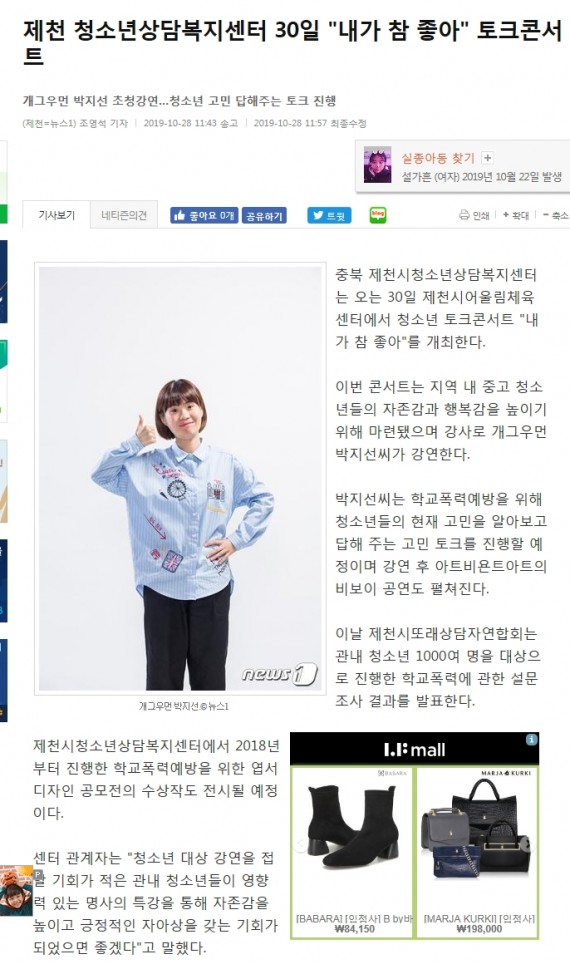 제천 청소년상담복지센터 30일 "내기 참 좋아" 토크콘서트 페이지 정보 작성자 운영자 댓글 0건 조회 3,421회 작성일 19-10-31 15:00 본문 제천 청소년상담복지센터 30일 "내기 참 좋아" 토크콘서트 목록 이전글제천시청소년상담복지센터, 박지선과 함께하는 청소년 토크콘서트 연다 19.10.31 다음글제천시, 개그우먼 박지선과 함께하는 청소년 토크콘서트 개최 19.10.31 댓글목록 댓글목록 등록된 댓글이 없습니다.