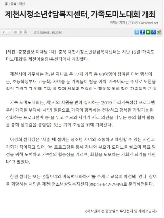 제천시청소년상담복지센터, 가족도미노대회 개최 페이지 정보 작성자 운영자 댓글 0건 조회 3,244회 작성일 19-08-27 14:07 본문 제천시청소년상담복지센터, 가족도미노대회 개최 목록 이전글제천시청소년상담복지센터 가족도미노대회 개최 '호응' 19.08.27 다음글제천시청소년상담복지센터, 가족도미노대회 개최 19.08.27 댓글목록 댓글목록 등록된 댓글이 없습니다.