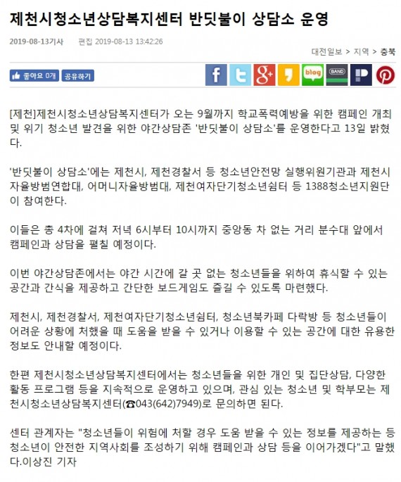 제천시청소년상담복지센터 반딧불이 상담소 운영 페이지 정보 작성자 운영자 댓글 0건 조회 3,274회 작성일 19-09-04 11:37 본문 제천시청소년상담복지센터 반딧불이 상담소 운영 목록 이전글제천시청소년상담복지센터 '반딧불이 상담소' 운영 19.09.04 다음글제천시청소년상담복지센터, 가족도미노대회 개최 19.08.27 댓글목록 댓글목록 등록된 댓글이 없습니다.