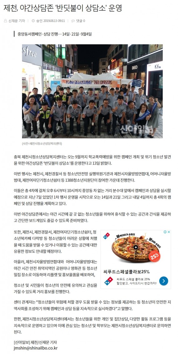 제천, 야간상담존 '반딧불이 상담소' 운영 페이지 정보 작성자 운영자 댓글 0건 조회 3,272회 작성일 19-09-04 11:39 본문 제천, 야간상담존 '반딧불이 상담소' 운영 목록 이전글제천시청소년상담복지센터, 야간상담존 '반딧불 상담소' 운영 19.09.04 다음글청소년상담복지센터, 반딧불이 상담소 운영 19.09.04 댓글목록 댓글목록 등록된 댓글이 없습니다.