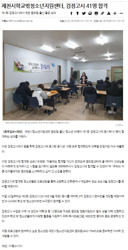제천시학교밖청소년지원센터, 검정고시 41명 합격 페이지 정보 작성자 운영자 댓글 0건 조회 3,419회 작성일 19-05-15 17:43 본문 . 목록 이전글제천시학교밖청소년지원센터, 검정고시 41명 합격 19.05.15 다음글제천시학교밖청소년지원센터, 검정고시 41명 합격 19.05.15 댓글목록 댓글목록 등록된 댓글이 없습니다.