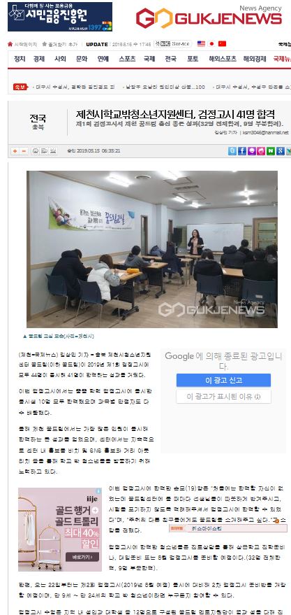 제천시학교밖청소년지원센터, 검정고시 41명 합격 페이지 정보 작성자 운영자 댓글 0건 조회 3,407회 작성일 19-05-15 17:51 본문 . 목록 이전글제천시 청소년지원센터 꿈드림 검정고시 41명 합격 19.05.15 다음글제천시학교밖청소년지원센터, 검정고시 41명 합격 19.05.15 댓글목록 댓글목록 등록된 댓글이 없습니다.