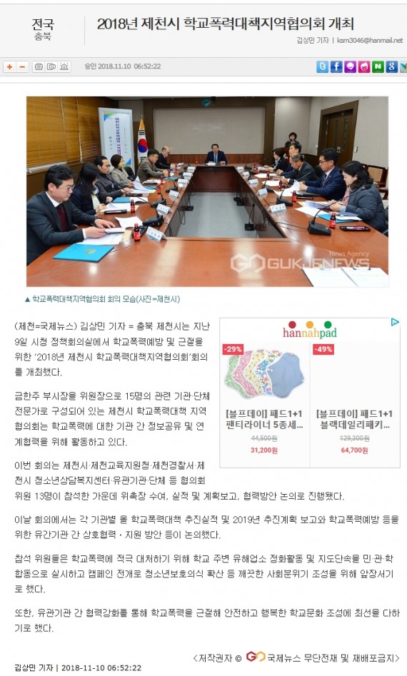 2018년 제천시 학교폭력대책지역협의회 개최 페이지 정보 작성자 운영자 댓글 0건 조회 3,850회 작성일 18-11-25 18:26 본문 2018년 제천시 학교폭력대책지역협의회 개최 목록 이전글제천청소년상담복지센터, 학교폭력예방 청소년 한마당 개최 18.11.25 다음글제천시청소년상담복지센터 찾아가는 학교폭력예방 캠페인 '따뜻한 밥데이' 실시 18.11.25 댓글목록 댓글목록 등록된 댓글이 없습니다.