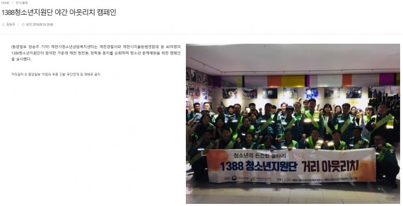 1388청소년지원단 야간 아웃리치 캠페인 페이지 정보 작성자 운영자 댓글 0건 조회 3,565회 작성일 18-09-17 10:56 본문 1388청소년지원단 야간 아웃리치 캠페인 목록 이전글제천청소년상담복지센터, 1388청소년지원단 야간 아웃리치 활동 18.09.17 다음글제천, 위기 청소년.학교 밖 청소년 발굴 연합캠페인 18.06.05 댓글목록 댓글목록 등록된 댓글이 없습니다.