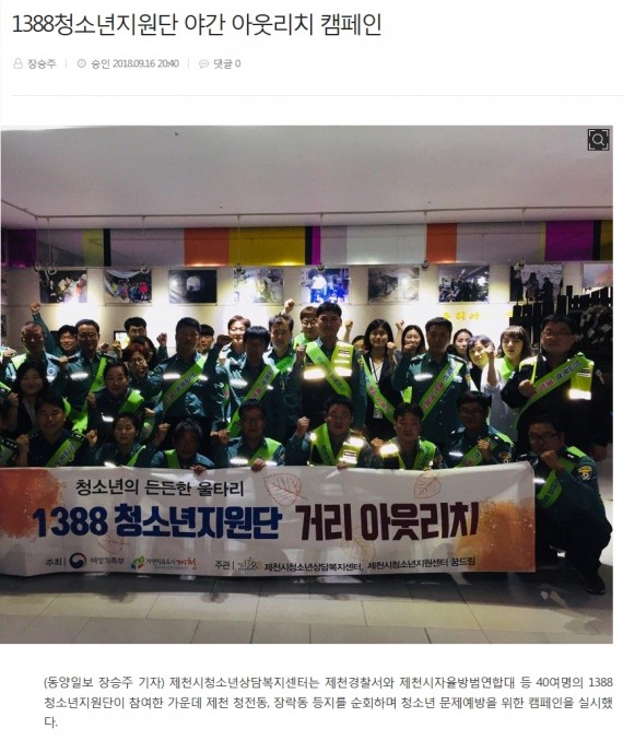 - 다음글제천시청소년상담복지센터, 1388청소년지원단 야간 아웃리치 활동 18.09.28