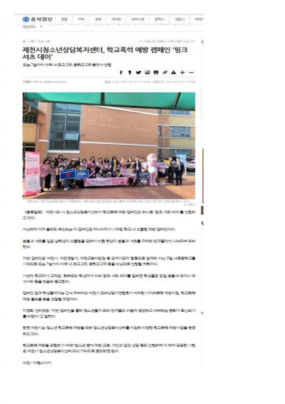 제천시청소년상담복지센터, '핑크셔츠 데이' 운영 페이지 정보 작성자 운영자 댓글 0건 조회 2,120회 작성일 23-05-24 11:05 본문 제천시청소년상담복지센터, '핑크셔츠 데이' 운영 목록 이전글제천시청소년상담복지센터, '핑크셔츠 데이' 운영 23.05.24 다음글제천시청소년상담복지센터, '핑크셔츠 데이' 운영 23.05.24 댓글목록 댓글목록 등록된 댓글이 없습니다.