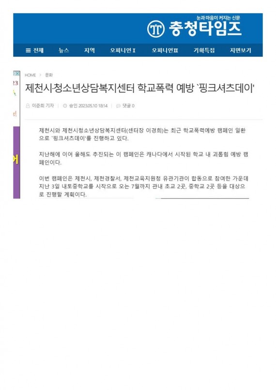 제천시청소년상담복지센터, '핑크셔츠 데이' 운영 페이지 정보 작성자 운영자 댓글 0건 조회 2,093회 작성일 23-05-24 11:05 본문 제천시청소년상담복지센터, '핑크셔츠 데이' 운영 목록 이전글제천시청소년상담복지센터, '핑크셔츠 데이' 운영 23.05.24 다음글제천시청소년상담복지센터, '핑크셔츠 데이' 운영 23.05.24 댓글목록 댓글목록 등록된 댓글이 없습니다.