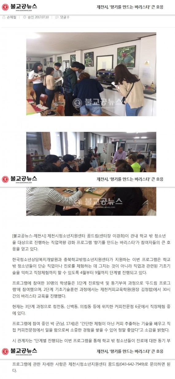 제천시, '향기를만드는 바리스타' 큰 호응 페이지 정보 작성자 운영자 댓글 0건 조회 3,975회 작성일 17-07-24 17:58 본문 제천시, '향기를만드는 바리스타' 큰 호응 목록 이전글제천시 꿈드림 사진전시회 '안녕, 마음' 개최 17.07.24 다음글제천시, 학교 밖 청소년 대상 '직업역량강화 프로그램' 운영 17.07.24 댓글목록 댓글목록 등록된 댓글이 없습니다.