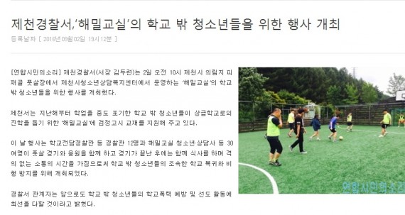 제천경찰서, '해밀교실'의 학교 밖 청소년들을 위한 행사 개최 페이지 정보 작성자 운영자 댓글 0건 조회 4,056회 작성일 16-11-03 14:13 본문 제천경찰서, '해밀교실'의 학교 밖 청소년들을 위한 행사 개최 목록 이전글제천시 학교 밖 청소년 지원센터 '꿈드림' 16.11.03 다음글제천시 학교밖 청소년 11명, 안전요원 자격증 획득 16.11.03 댓글목록 댓글목록 등록된 댓글이 없습니다.