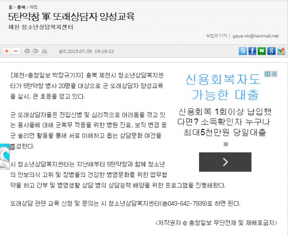 5탄약창 軍 또래상담자 양성교육 페이지 정보 작성자 운영자 댓글 0건 조회 4,654회 작성일 15-07-21 11:36 본문 5탄약창 軍 또래상담자 양성교육 목록 이전글군복무 돕는 "우린 군 또래상담자" 15.07.21 다음글제천시청소년상담복지센터, 군 또래상담자 양성교육 호응 15.07.21 댓글목록 댓글목록 등록된 댓글이 없습니다.