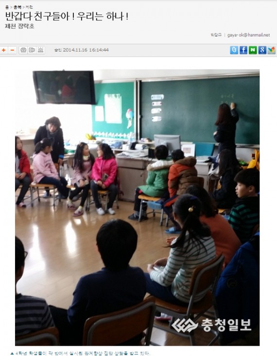 반갑다 친구들아! 우리는 하나! 페이지 정보 작성자 운영자 댓글 0건 조회 3,952회 작성일 14-11-20 17:37 본문 반갑다 친구들아! 우리는 하나! 목록 이전글제천시청소년상담복지센터, 청소년정책포럼콘서트 15.01.05 다음글학교폭력예방을 위한 '스위치를 켜라' 14.11.20 댓글목록 댓글목록 등록된 댓글이 없습니다.