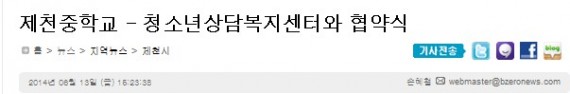 제천중학교-청소년상담복지센터와 협약식 페이지 정보 작성자 운영자 댓글 0건 조회 4,253회 작성일 14-06-19 11:24 본문 제천중학교-청소년상담복지센터와 협약식 목록 이전글13기 청소년상담복지센터 카운슬러대학 수료식 14.06.19 다음글제천 신백초-청소년상담복지센터 협약 14.06.19 댓글목록 댓글목록 등록된 댓글이 없습니다.