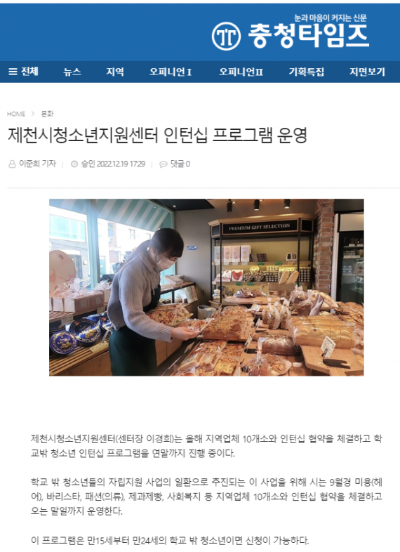제천시청소년지원센터 인턴십 프로그램 운영 페이지 정보 작성자 운영자 댓글 0건 조회 2,150회 작성일 23-01-04 19:19 본문 . 목록 이전글제천시청소년지원센터, 10개 지역업체와 손잡고 인턴십 기회 제공 23.01.04 다음글제천시청소년지원센터, 10개 지역업체와 손잡고 인턴십 기회 제공 23.01.04 댓글목록 댓글목록 등록된 댓글이 없습니다.