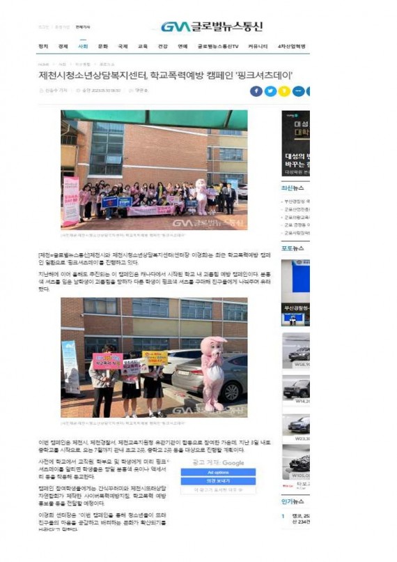 제천시청소년상담복지센터, '핑크셔츠 데이' 운영 페이지 정보 작성자 운영자 댓글 0건 조회 2,206회 작성일 23-05-24 10:55 본문 제천시청소년상담복지센터, '핑크셔츠 데이' 운영 목록 이전글제천시청소년상담복지센터, '핑크셔츠 데이' 운영 23.05.24 다음글제천시청소년지원센터, 10개 지역업체와 손잡고 인턴십 기회 제공 23.01.04 댓글목록 댓글목록 등록된 댓글이 없습니다.