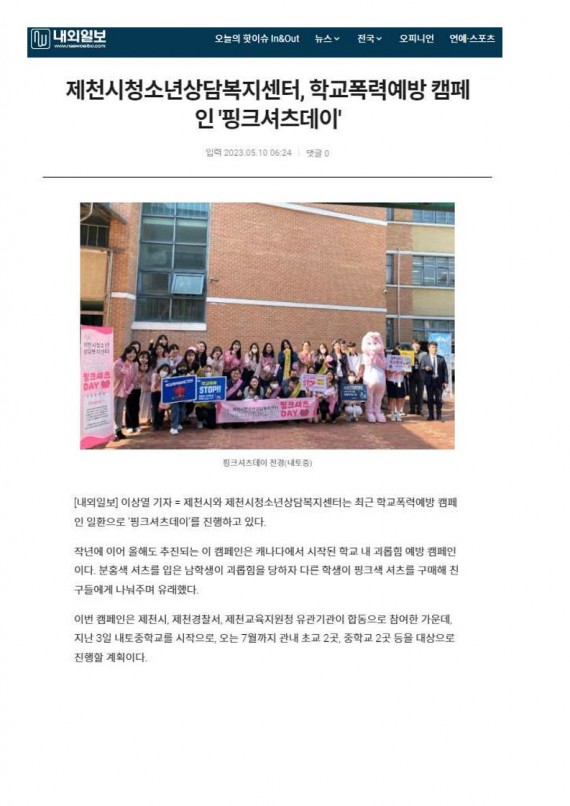 제천시청소년상담복지센터, '핑크셔츠 데이' 운영 페이지 정보 작성자 운영자 댓글 0건 조회 2,114회 작성일 23-05-24 11:04 본문 제천시청소년상담복지센터, '핑크셔츠 데이' 운영 목록 이전글제천시청소년상담복지센터, '핑크셔츠 데이' 운영 23.05.24 다음글제천시청소년상담복지센터, '핑크셔츠 데이' 운영 23.05.24 댓글목록 댓글목록 등록된 댓글이 없습니다.