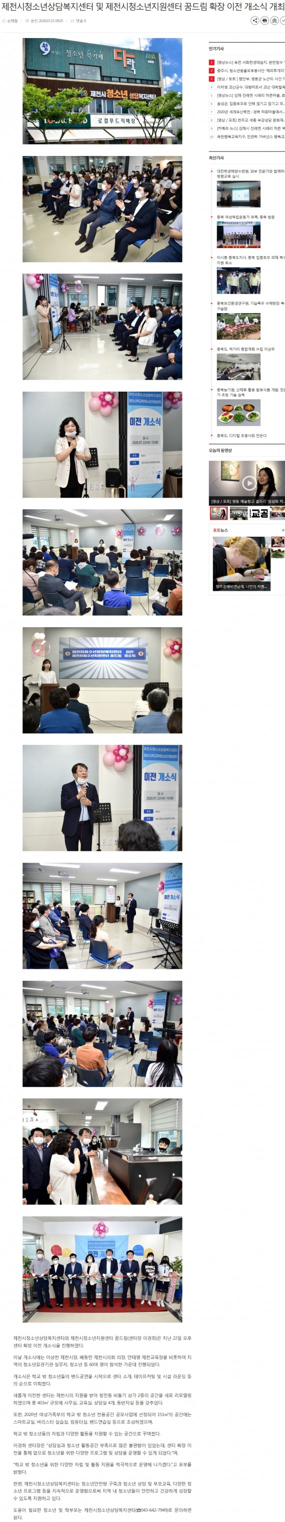 - 이전글제천시청소년상담복지센터.청소년지원센터 꿈드림 확장 이전 개소식 20.08.06