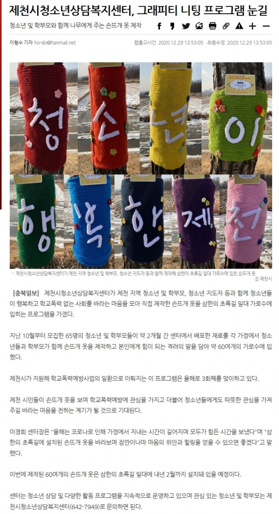 제천시청소년상담복지센터, 그래피티 니팅 프로그램 눈길 페이지 정보 작성자 운영자 댓글 0건 조회 2,846회 작성일 20-12-31 17:31 본문 제천시청소년상담복지센터, 그래피티 니팅 프로그램 눈길 목록 이전글제천시청소년상담복지센터, 그래피티 니팅 프로그램 진행 20.12.31 다음글제천시청소년지원센터, 학교 밖 청소년들 직장체험 호응 20.11.17 댓글목록 댓글목록 등록된 댓글이 없습니다.
