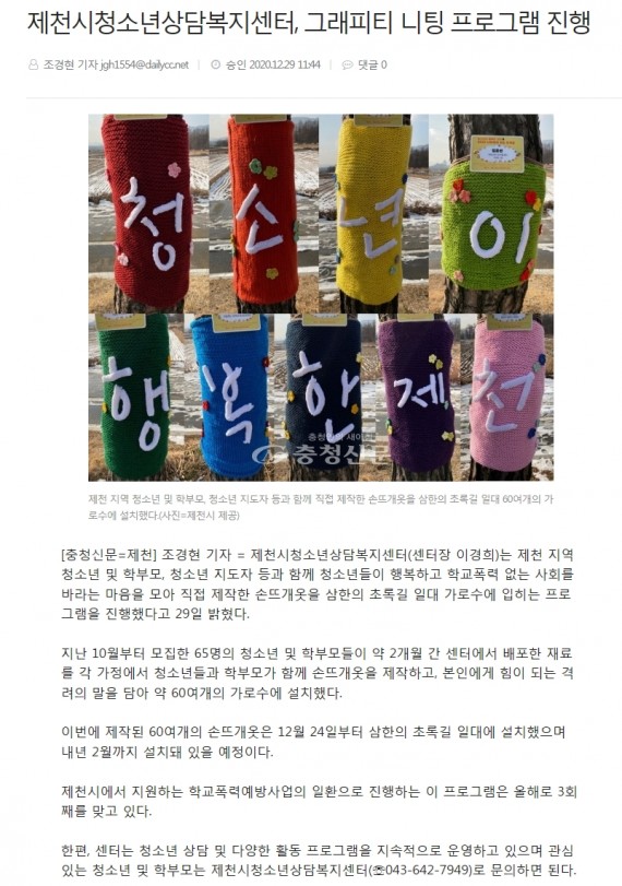 제천시청소년상담복지센터, 그래피티 니팅 프로그램 진행 페이지 정보 작성자 운영자 댓글 0건 조회 2,794회 작성일 20-12-31 17:31 본문 제천시청소년상담복지센터, 그래피티 니팅 프로그램 진행 목록 이전글제천시청소년상담복지센터, 그래피티 니팅 프로그램 진행 20.12.31 다음글제천시청소년상담복지센터, 그래피티 니팅 프로그램 눈길 20.12.31 댓글목록 댓글목록 등록된 댓글이 없습니다.