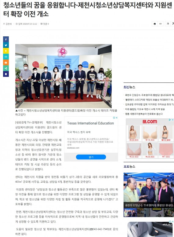 청소년들의 꿈을 응원합니다-제천시청소년상담복지센터와 지원센터 확장 이전 개소 페이지 정보 작성자 운영자 댓글 0건 조회 2,927회 작성일 20-08-06 10:55 본문 청소년들의 꿈을 응원합니다-제천시청소년상담복지센터와 지원센터 확장 이전 개소 목록 이전글제천시, 꿈드림 확장 이전 개소식 개최 20.08.06 다음글제천시, 꿈드림 확장 이전 개소식 개최 20.08.06 댓글목록 댓글목록 등록된 댓글이 없습니다.