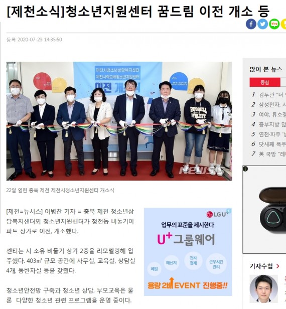 청소년지원센터 꿈드림 이전 개소 페이지 정보 작성자 운영자 댓글 0건 조회 2,810회 작성일 20-08-06 10:56 본문 청소년지원센터 꿈드림 이전 개소 목록 이전글제천시청소년상담복지센터 확장 이전 개소 20.08.06 다음글제천시, 꿈드림 확장 이전 개소식 개최 20.08.06 댓글목록 댓글목록 등록된 댓글이 없습니다.