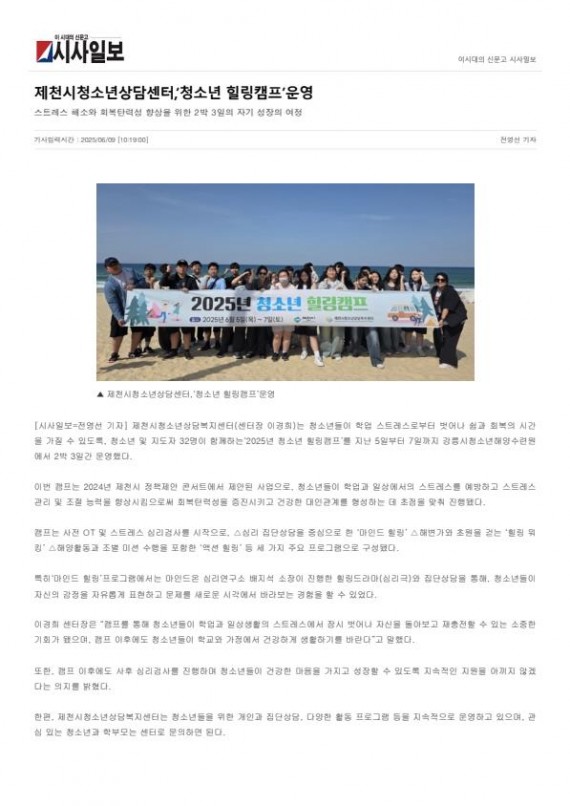 제천시청소년상담센터, '청소년 힐링캠프' 운영 페이지 정보 작성자 운영자 댓글 0건 조회 620회 작성일 25-06-24 15:00 본문 제천시청소년상담센터, '청소년 힐링캠프' 운영 목록 이전글제천시청소년상담센터, '청소년 힐링캠프' 운영 25.06.24 다음글제천시청소년상담센터, '청소년 힐링캠프' 운영 25.06.24 댓글목록 댓글목록 등록된 댓글이 없습니다.