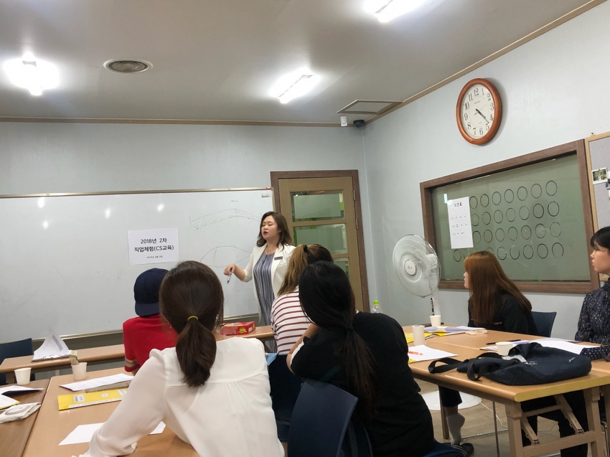 현재 직업역량강화프로그램에 참여하고 있는 청소년들이 고객을 대할 때 어떠한 태도로 대해야 하는지, 고객들을 만족시키기 위해서는 어떤 서비스를 제공해야하는 지 배울 수 있는 좋은 시간이었습니다!