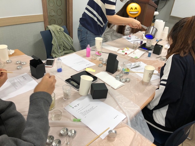 원하는 대로 꾸미고, 원하는 향을 넣어 아로마 향초를 만들어 볼 수 있는 재미있는 시간이었습니다!