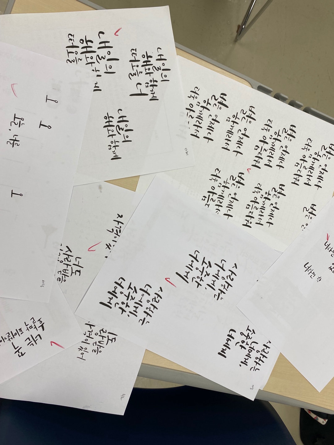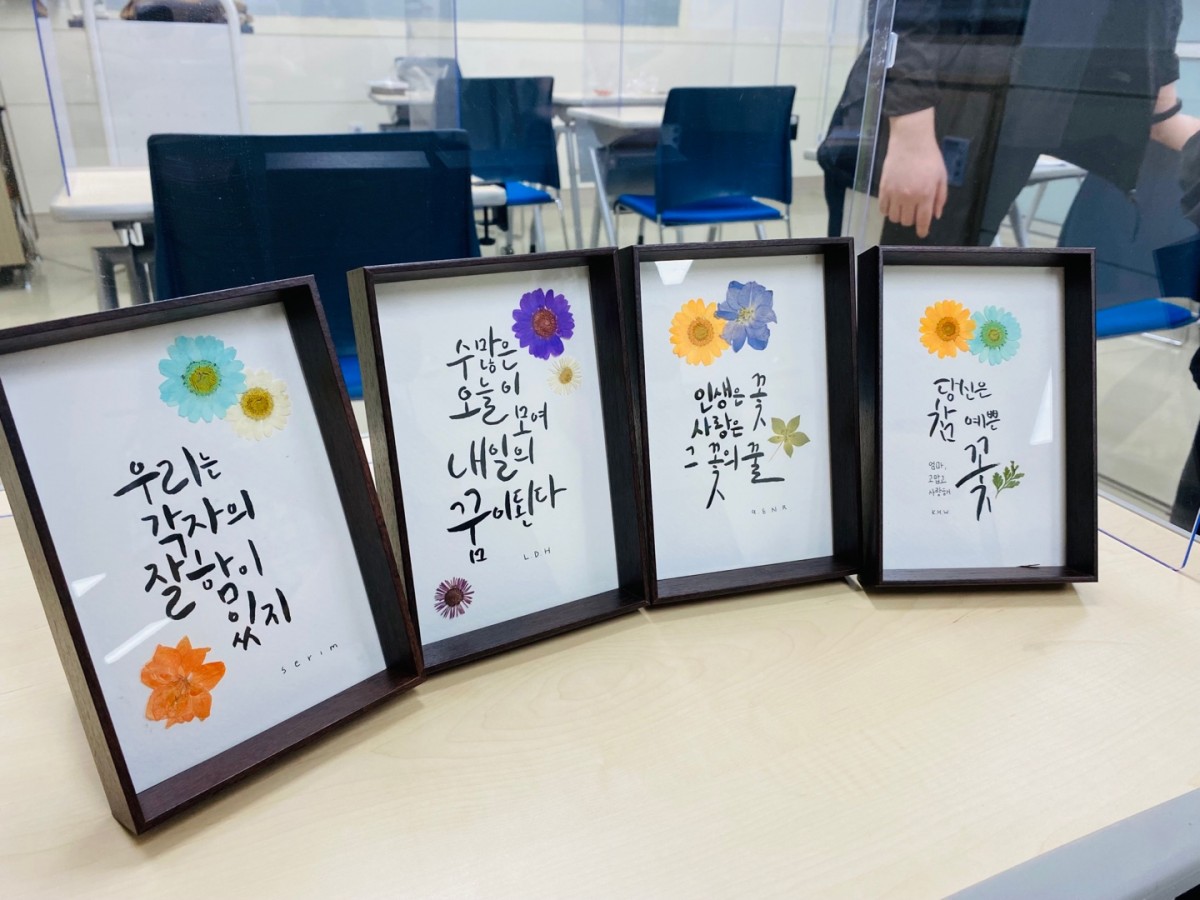 마지막 시간에 열심히 쓴 글씨들은 예쁜 캘리그라피 엽서로 탄생할 예정이에요!