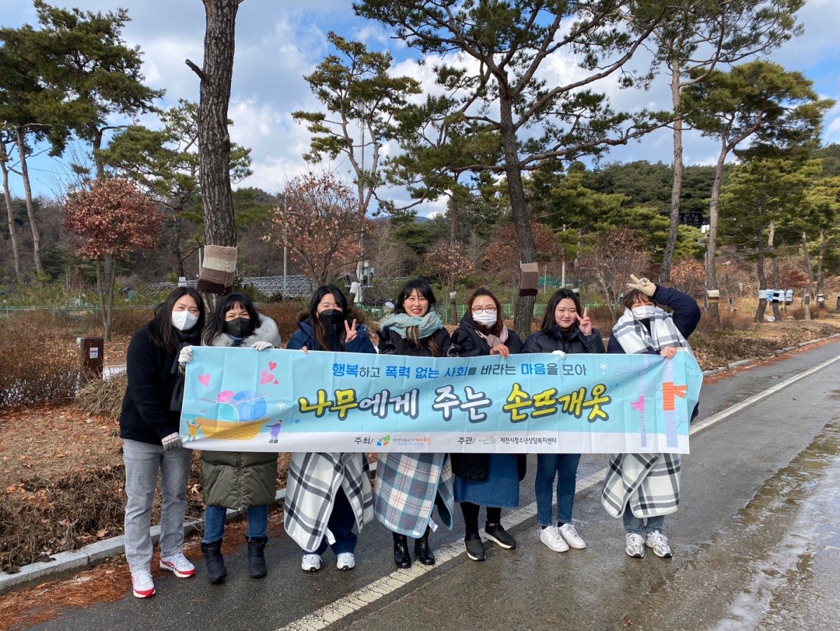 겨울이 되면 잊지 않고 찾아오는, 학교폭력예방을 위해 제천의 청소년과 시민이 함께 참여하는,‘나무에게 주는 손뜨개옷’ 이 돌아왔습니다!