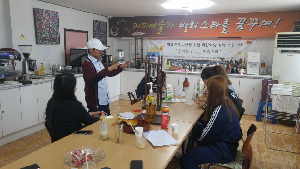 바리스타학원과 미용학원에서 각각 기초기술훈련을 모두 수료하고 이제 카페와 미용실에서 직장체험을 합니다.